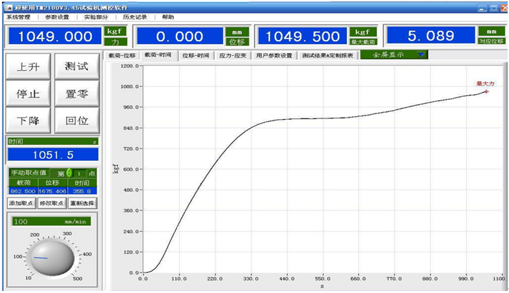 技术参数:容量选择 50 100 200 KG内任选 精度等级 0.5级 有效测力范围 0.4%~100% 测力精度 示值的±0.5%以内 试验机分辨率 最大负荷1/±250000码,内外不分档,且全程分辨率不变 负荷传感器 基本配置:拉、压传感器(最大负荷) 有效试验宽度 150mm 有效拉伸空间 600mm(按客户要求订做) 试验速度范围 0~500mm/min 位移测量精度 示值的±0.5%以内 试台安全装置 电子限位保护 试台返回功能 手动或自动两种选择、试验结束后自动或手动返回试验初始位置 超载保护 超过最大负荷10%,机器自动保护 夹具配置 拉伸夹具一套 主机尺寸 420×350×1650mm 电机 220V±10% 0.2KW/0.4KW 主机重量 (约)70 Kg